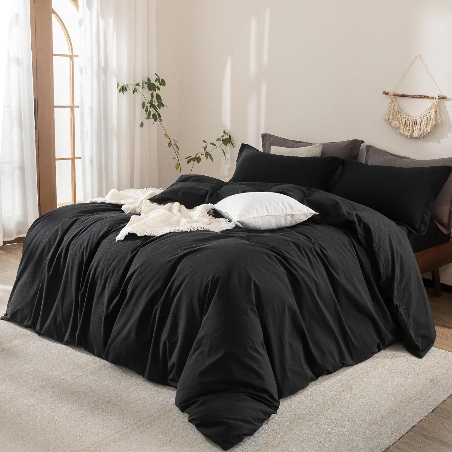 Our duvet cover set is made from 100% high-quality washed Brushed microfiber, super soft breathable skin-friendly and comfy, ensure comfort for all seasons. Compared to other fabric, microfiber is naturally wrinkle resistant and shrink resistant, can easily keep its shape without too much effort to care and to organize. Save time and money, just enjoy simple comfort with PHF washed microfiber duvet covers.