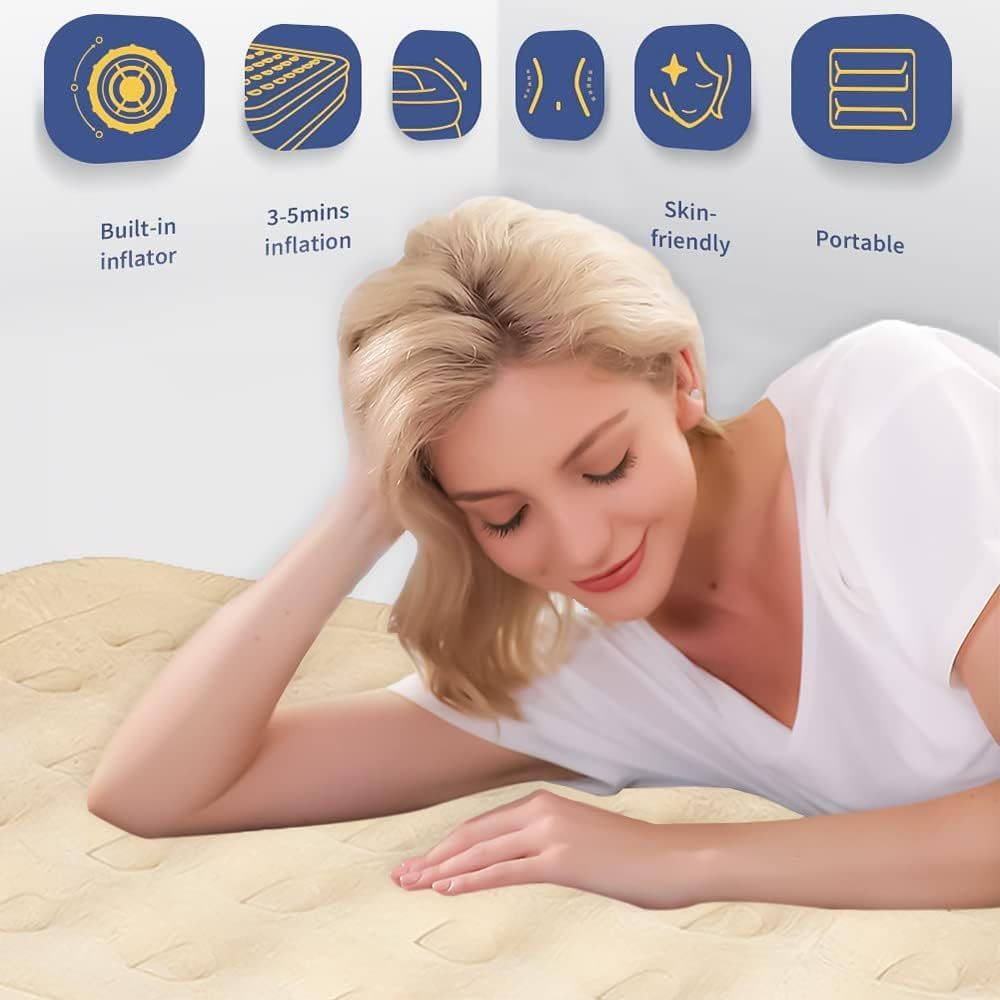 Unique contemporary designs. This quick inflating comfortable high raised Double air bed with Built in Air pump is ideal for having a few friends over to stay the night.