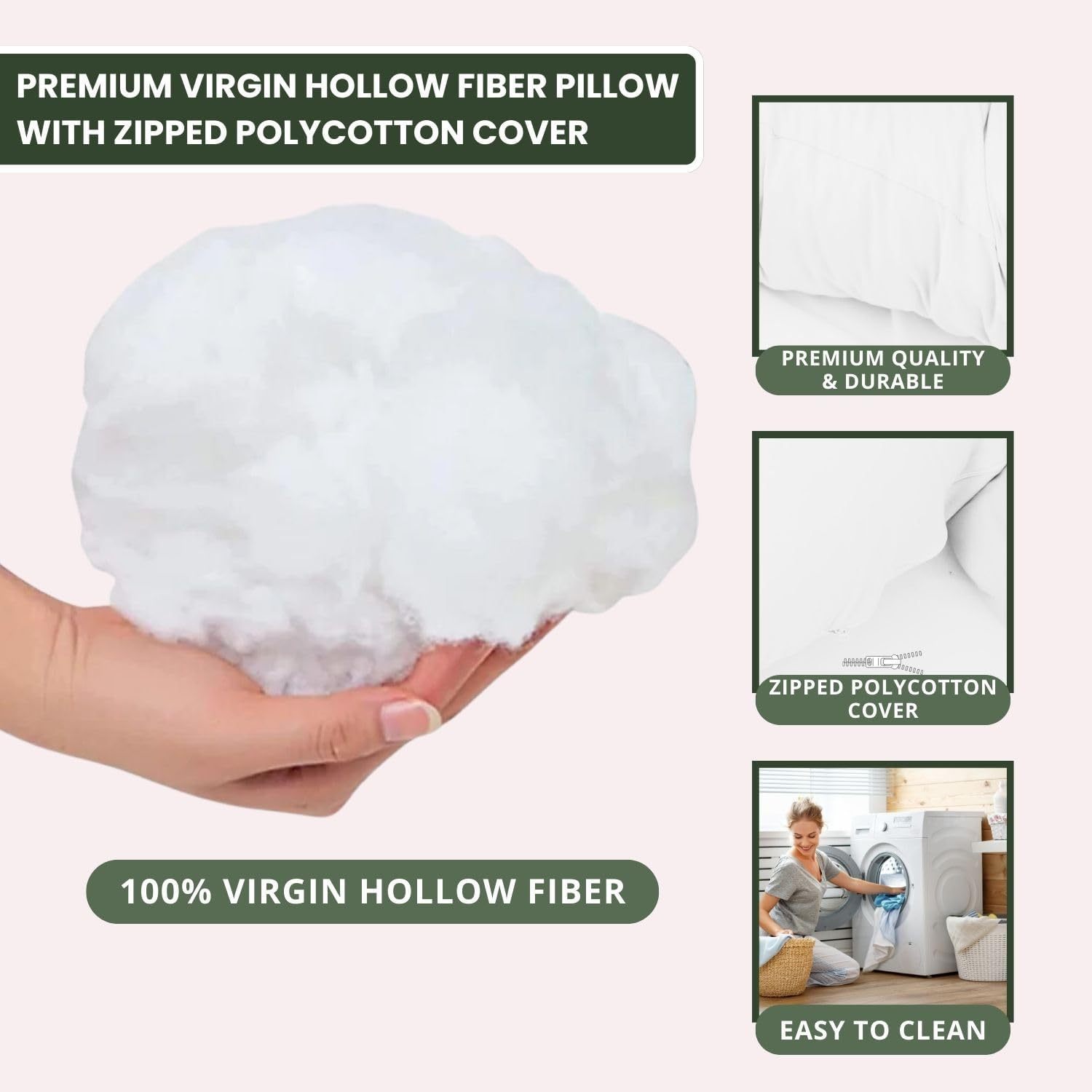 Luxurious 100% Virgin Hollow Fiber Filling : Filled with premium virgin hollow fiber, this cuddle pillow ensures exceptional softness and resilience. The hollow fibre filling of pillows for sleeping maintain shape and plushness over time, offering consistent support throughout and beyond.